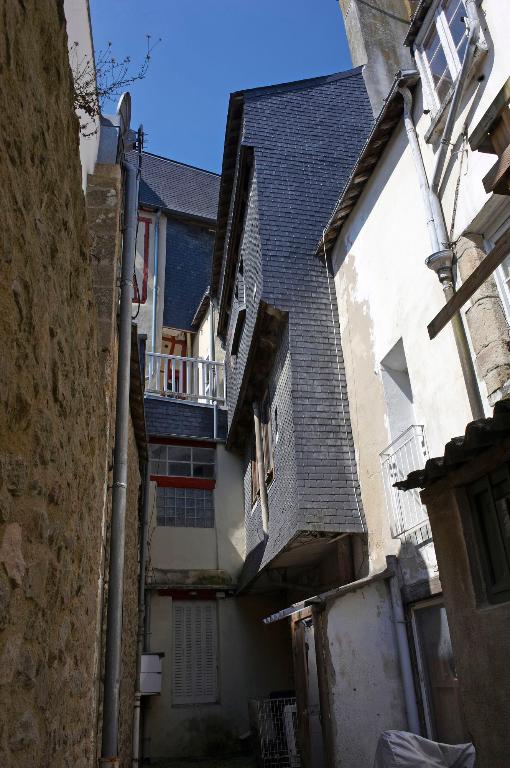 Maison ancienne construite au 15e siècle d'après ses caractéristiques architecturales et mentionnée dans le rentier du domaine ducal de Vannes réalisé entre 1455 et 1458. Elle appartient à cette époque à un certain Richard Kerboutier dont le métier n'est pas stipulé. Dans les archives de la réformation du domaine en 1677, elle figure comme appartenant à François Rado ("noble écuyer") sieur du Mars. La maison montre une surélévation qui a permis d'aménager les combles. L'essentage d'ardoises en façade sud, sur la venelle qui la borde, masque le pan de bois. On voit que l'escalier qui est en place a été repris mais qu'il a conservé des parties anciennes du 17e siècle : les balustres vers le 1er étage et les marches au 3e étage. Il existe dans la salle du 1er étage sur le mur est, à côté de la cheminée, une porte aujourd'hui condamnée qui permettait autrefois de communiquer avec la maison précédente. La cheminée visible du 1er étage peut remonter au 15e siècle et confirme ainsi la datation proposée. La réformation de cette maison mentionne une sortie de la maison sur la venelle de la Bienfaisance qui permettait de se rendre depuis la rue du même nom à la place Saint-Pierre. Le document mentionne la fermeture de ce passage ("par ordonnance de police") 4 ou 5 ans plus tôt, donc vers 1675.