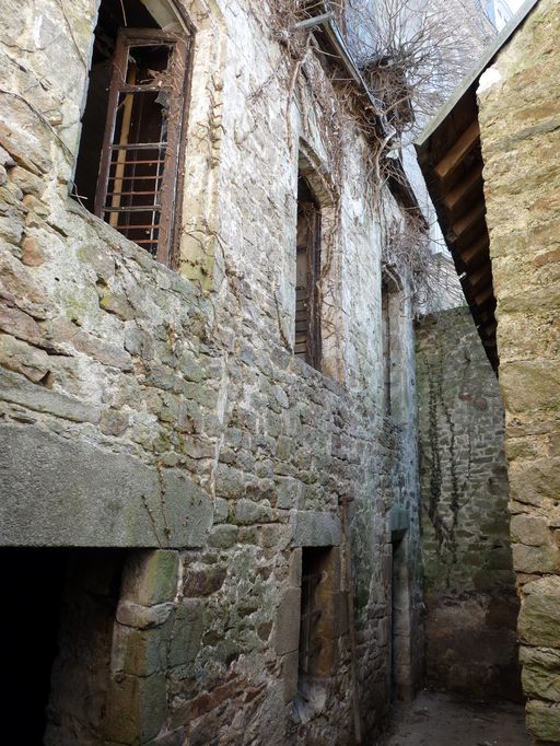 Maison construite en alignement de rue et accolée au mur d'enceinte. De plan rectangulaire, elle est à plan simple en profondeur avec cage d'escalier centrale en pan de bois permettant d'avoir accès aux étages. L'escalier est à retours sans jour à balustres. Une partie des écuries encore visible est sous appentis et désenduite ; elle comprend un étage carré et un étage de comble.