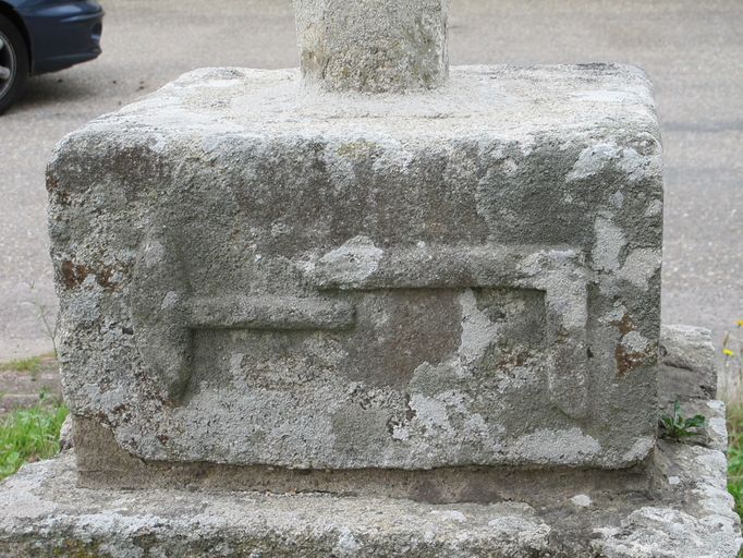 Croix érigée à l'occasion du terrassement de la route menant de Lizio à Saint-Aubin. Elle se trouve à l'endroit où un maçon avait été enterré avec ses outils ; la voûte de sa tombe céda sous le poids du cheval qui servait au chantier.