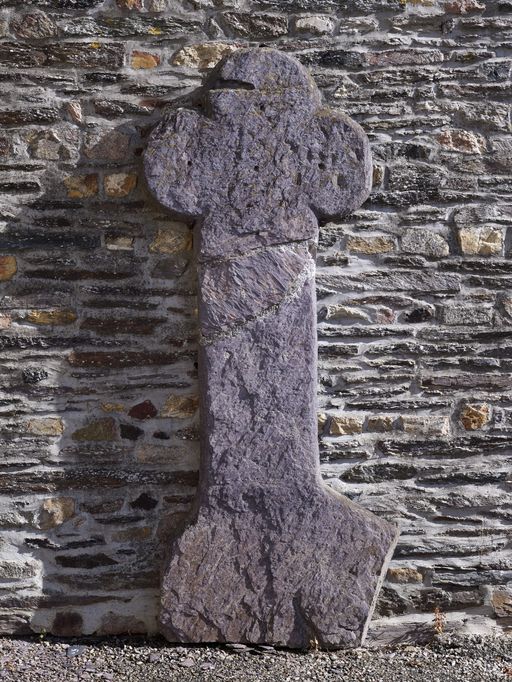 Croix palis monolithe sans base ; en schiste violet, trilobée ; fût de section rectangulaire, dont la base comporte un large empattement ; fût et croix chanfreinés sur les deux faces. Décor de la face principale : sur la croix, des trous symbolisant les cinq plaies du Christ.