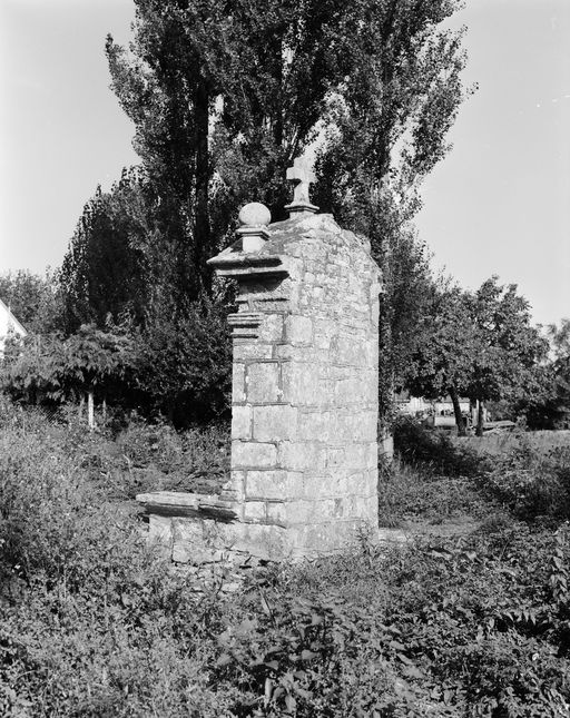 Fontaine mur à pignon mouluré, et creusé d'une niche à statue.