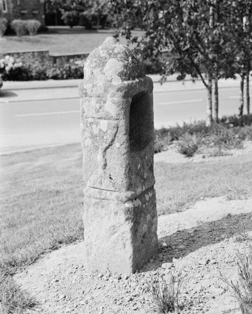 Bloc de granite monolithe de section carrée percé de deux niches. Décor en bas-relief : calice.