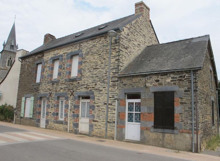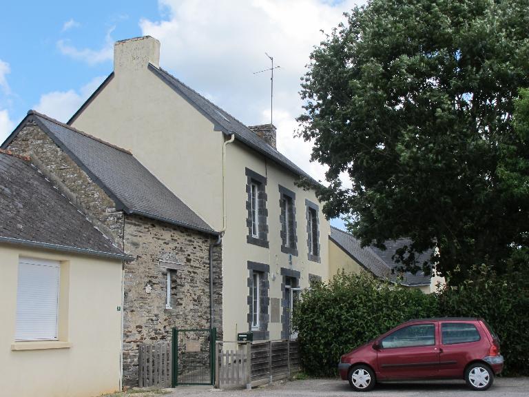 Maison de plan allongé de type ternaire construite en 1899 ; façade principale orientée au sud précédée d’une cour sur laquelle donne une grange ; murs en moellons de schiste enduits, corniche en quart de rond et encadrement des baies en pierre de taille de granite calibrées ; étage carré éclairé par trois fenêtres forment travée avec les baies inférieures ; au-dessus de la porte centrale, une lucarne en granite à fronton triangulaire gravé de la date 1899 ; l’appentis postérieur est plus tardif.