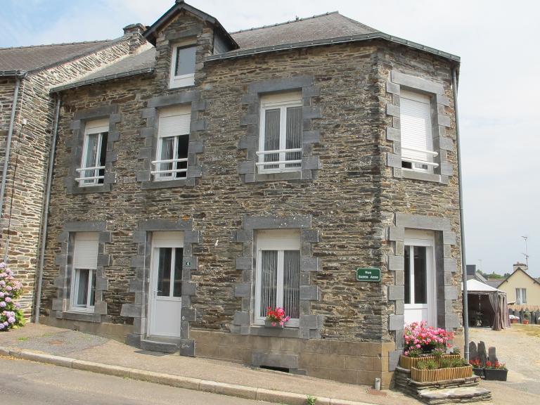 Maison de plan allongé de type ternaire, construite en 1955, « la dernière construite en pierre » (renseignement oral) ; façade principale orientée au sud, sur le jardin ; murs en moellons équarris de schiste, encadrement des baies en pierre de taille de schiste, appuis et linteaux en ciment ; étage de comble éclairé, sur le jardin par trois fenêtres forment travée avec les baies inférieures ; sur le cadastre de 1824 figure à cet endroit un bâtiment avec tour d'escalier demi-hors œuvre, en façade sur rue.
