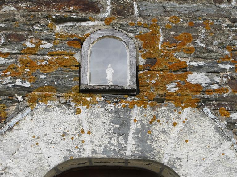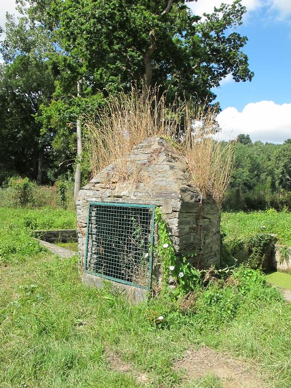 La fontaine, de plan carré, est couverte d'une voûte pyramidale de moellons de schiste en tas de charge ; elle abrite dans le mur du fond une niche à statuette.