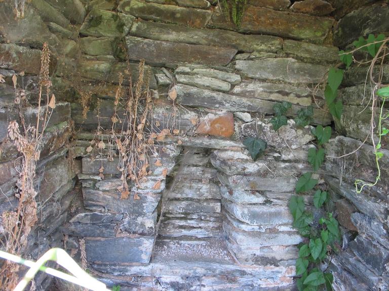 Ancienne maison de plan massé figurant sur le cadastre de 1824 (parcelle 1165) ; façade principale orientée au sud ; murs en moellons de schiste ; murs intérieurs enduits ; vestige d’une cheminée en schiste dont il ne subsiste que les piédroits et les consoles.
