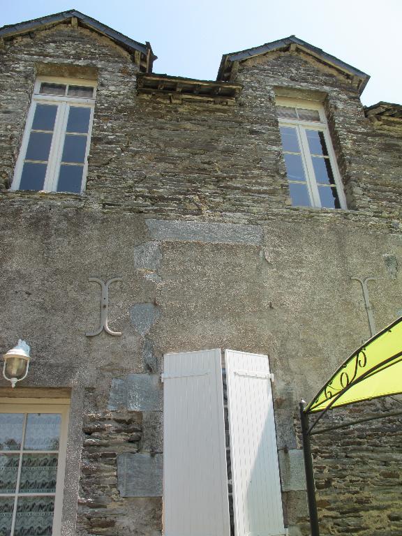Maison de plan allongé composée de deux logis juxtaposés, orientée sud-est/nord-ouest ; murs en moellons de schiste autrefois enduit, encadrement des baies en pierre de taille de schiste calibrées, linteau souligné d’une rangée de briques ; étage carré à quatre fenêtres formant travée avec les ouvertures du rez-de-chaussée dont les porte et fenêtre de droite ont été inversées ; long appentis postérieur aux logis, qui englobe peut-être la tour d’escalier visible sur le cadastre de 1824 ; dans le prolongement du logis, au sud-ouest, grange ou charreterie surmontée d’un grenier (18e siècle ?), aux ouvertures à linteau de bois ; la reprise dans le mur indique une reconstruction du logis qui a pu avoir lieu à la fin du 19e siècle.