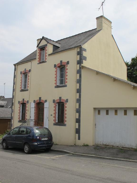 Maison de plan allongé composée de deux logis séquentiels, orientée est-ouest ; murs en moellon de schiste, encadrement des baies en pierre de taille de schiste calibrées et brique alternées ; étage carré dont les trois fenêtres sont situées dans l'intervalle des ouvertures du rez-de-chaussée ; au-dessus de la fenêtre supérieure centrale, une ardoise sur laquelle est peinte une croix et la date 1910. À une date postérieure mais peu éloignée, ajout au sud d’un bâtiment en rez-de-chaussée et comble qui respecte l’apparence du précédent ; une porte, une fenêtre en façade sur rue, deux fenêtres dans le mur-pignon.