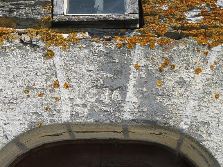 Maison de plan allongé ; façade principale orientée au nord. Les très nombreuses reprises dans la maçonnerie rendent difficile l’analyse du bâtiment ; murs en moellons de schiste ; la partie inférieure semble en place, l’étage de comble a peut-être été créé au début du 20e siècle ; la date 1676 est gravée sur la clé de l’arc surbaissé de la porte surmonté d’une niche à statuette en bois.
