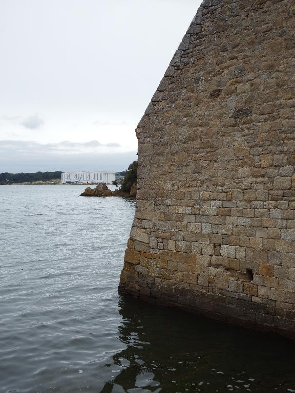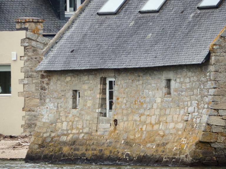 Le bâtiment est conçu selon un plan rectangulaire et son soubassement est en pierre de taille de granit, évitant ainsi l'utilisation d'un mortier incompatible avec l'eau de mer. Les murs sont continués en partie haute par de simples moellons et visiblement très remaniés. Côté aval le soubassement est marqué par un fruit du mur destiné à prévenir de l'enfoncement dans la vase.