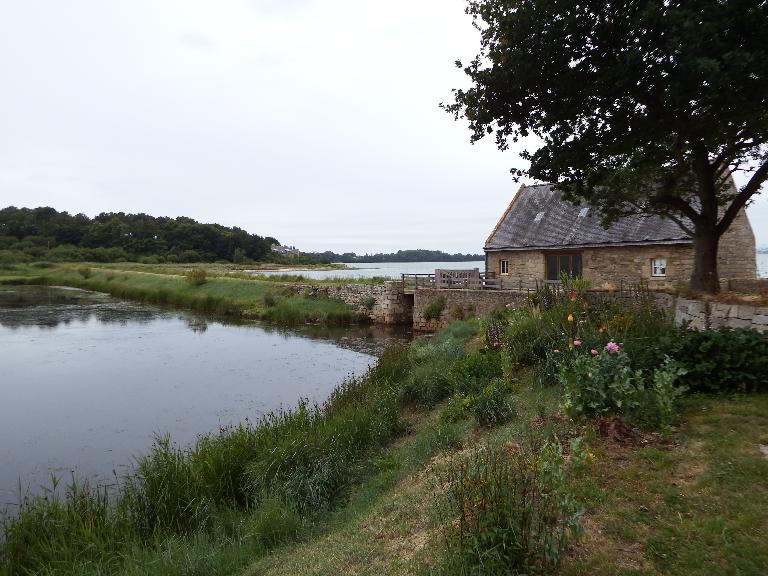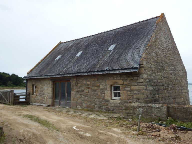 La façade aval accueille une porte haute qui permettait aux bateaux de décharger directement leur grain depuis la mer, un anneau pour s'amarrer est encore présent. Cette façade compte également deux fenestrons. La façade amont a visiblement été remaniée puisqu'elle accueille une porte charretière, assez inhabituelle pour les moulins à marée et qui pourrait indiquer que le moulin a servi de remise pendant un moment. Deux fenêtres sont réparties symétriquement autour, les pignons quant à eux sont aveugles.