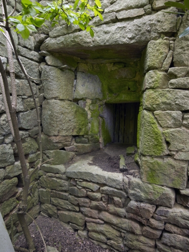 A l'ouest, une partie servant de dépendance a conservé sa cheminée du 15e siècle ; la présence de l'escalier en vis en lien avec cet espace suppose une nouvelle salle basse, peut-être la cuisine, surmontée ou non d'un étage disparu.