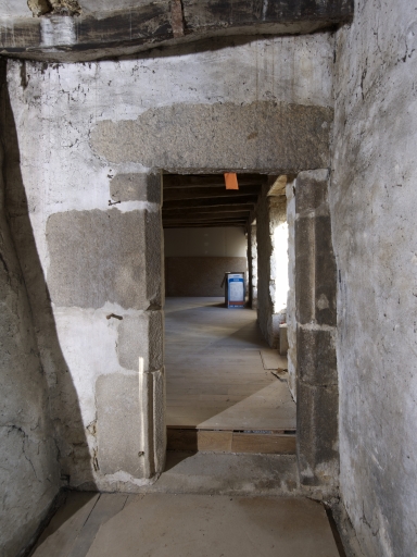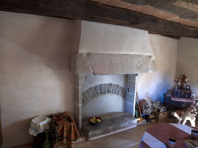 La façade de cette ferme est sans doute moins ordonnancée que sa voisine, et donc moins proche des modèles urbains. Contemporaine de la ferme voisine, cette grande ferme ne manque pas d'intriguer par sa distribution et la complexité de son organisation. Le logis dispose en effet de deux parties habitables : la partie ouest est conforme au schéma habituel, salle au rez-de-chaussée (avec cheminée et évier, sol en terre battue) surmonté d'un faux-étage à usage de grenier (si ce n'est que la salle, plus longue qu'à l'habitude, est éclairée par deux fenêtres) : elle est sans doute destinée à l'exploitant. Ce qui ne semble pas le cas de la partie est, beaucoup plus soignée : les deux pièces superposées, salle et chambre, sont dotées de cheminées du 16e siècle, celle de l'étage remontée : on remarquera surtout la qualité de la pièce du rez-de-chaussée avec sa remarquable cheminée à linteau de granite, le sol dallé, l'évier mural soigné. Ces cheminées sont toutes deux attribuables à la fin du 16e siècle (même si celle de l'étage est remontée), aussi se posera-ton la question du remploi ou de la conservation du pignon est d'un bâtiment antérieur, probable vu l'épaisseur du mur qui porte deux conduits de cheminée superposées. Ces deux pièces soignées pourraient être au 19e siècle des chambres de réserve pour le propriétaire qui reste à identifier. Le mur pignon serait-il celui de l'hébergement noble d'Olivier Brouez, signalé dans la réformation de 1427 au village de Lézévry ?