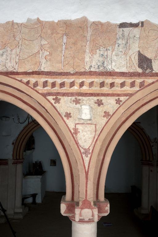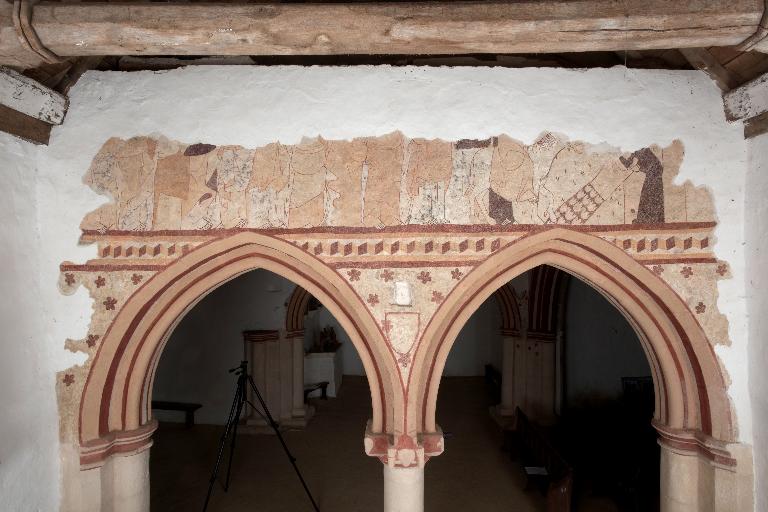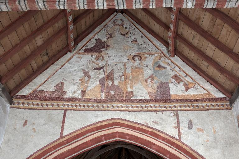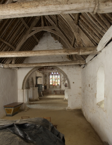 La nef appartient à une troisième campagne, postérieure de peu à celle du chœur : la charpente à entraits chanfreinés aux extrémités baguées, sans poinçon, se rapporte au 16e siècle, comme la porte ouest en plein cintre chanfreinée, rehaussée au 19e siècle. Légèrement plus basse que le carré du transept, la nef s'individualise au niveau du toit par l'émergence de l'arc diaphragme. Il est probable qu'à ce niveau se trouvait un clocher reporté sur le pignon ouest peut-être lors de la campagne de 1638.