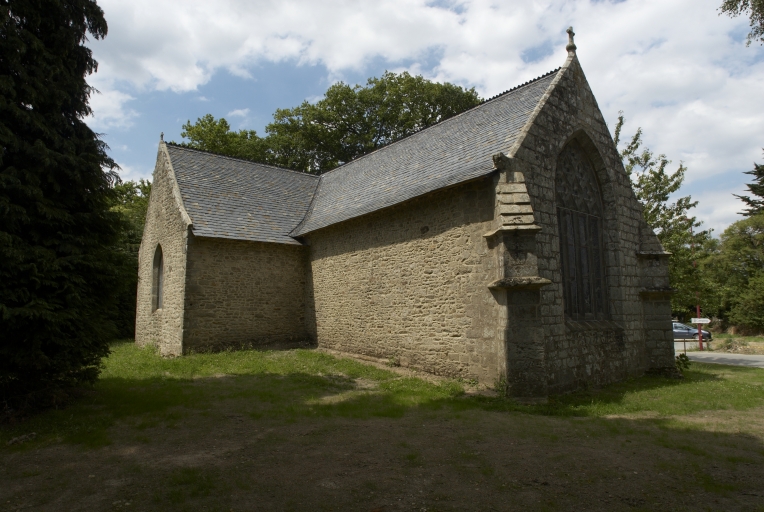 Le mur nord du chœur montre une reprise au niveau du transept et une seconde reprise plus importante correspondant au mur du chevet en pierre de taille, avec contreforts d'angle. Comme dans beaucoup d'édifices gothiques bretons, la grande fenêtre axiale du chœur à chevet plat ornée d'un fenestrage à quadrilobes et lancettes redentées, est le seul éclairage du chœur ; le reste de l'édifice se contente d'une petite fenêtre dans le bras sud dont le remplage a été refait, la nef ayant été percée tardivement d'une modeste baie en plein cintre.