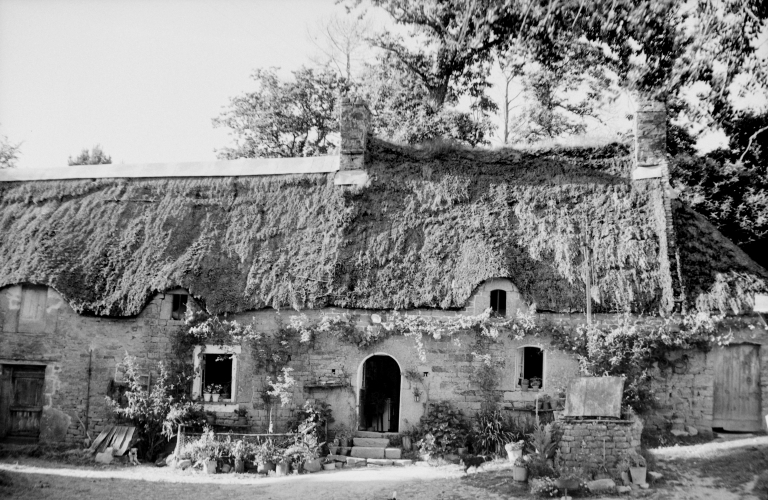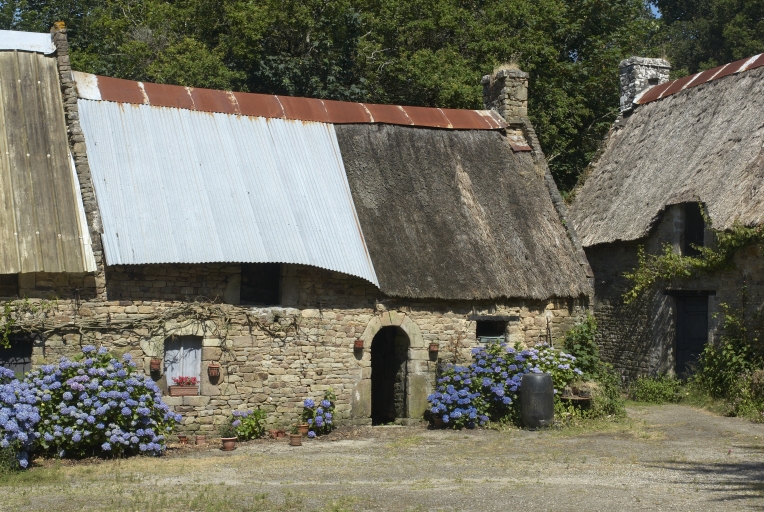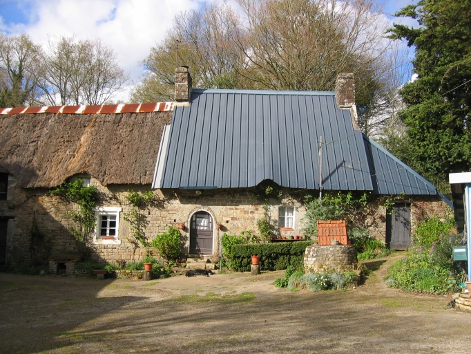 Cette ferme isolée au nord de la commune montre un constraste étonnant entre une certaine richesse manifestée dans la mise en oeuvre en pierre de taille du logis, et les modestes linteaux de bois qui garnissent les ouvertures d'une partie des dépendances : la période révolutionnaire qui sépare la date de construction du logis et des dépendances a sans doute modifié les conditions matérielles de la ferme. L'influence de l'architecture de Lorient est perceptible avec une certaine précocité (en milieu rural) tant dans la mise en oeuvre que dans l'utilisation du linteau en arc segmentaire pour la fenêtre, tandis que la porte est encore en plein cintre. Le logis à pièce unique, bien séparé des dépendances par un refends, est également un indice de modernité, à une époque où tant d'autres fermes en Morbihan sud continuent à pratiquer la cohabitation partielle hommes-animaux, même si la chambre accessible par ce logis doit, elle, communiquer avec la dépendance. Une chaumière à Séludiern (parcelle 44) adoptait la même structure, mais la restauration actuelle a ajouté une porte dans la chambre, dénaturant le parti initial, encore bien visible sur la photo de 1969.