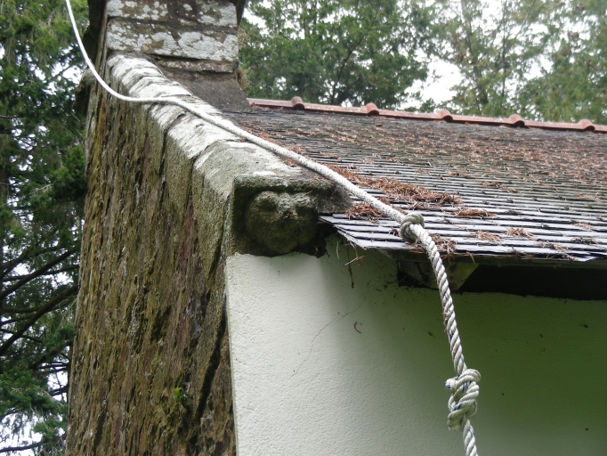 Tête sculptée sur la crossette du rampant sud-ouest.