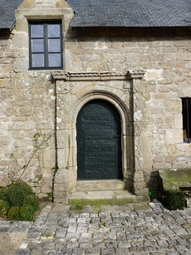 La fréquence des portes en anse de panier, profondément moulurées et parfois ornées d'une étoile, d'une fleur (Keryagune, Mane Guelo, fig.46) sont la manifestation la plus fréquente de décor. Une seule est datée à Kersassin (1644, fig.64), mais on peut penser que beaucoup sont remployées. On note accompagnant ces portes à Kerguen (fig.28), la présence d'un blason et de moutons (témoin probable d'un ancien lieu exempt, fig.31) ou encore de coq au même endroit (fig.29), à Trézédy, une porte et un dragon remployés d'une demeure noble ou d'un édifice religieux (fig. 89, 91), des visages sculptés sur la pierre d'assise des rampants des pignons (Kersassin, fig.62), ou encore au 19e siècle les corniches des souches de cheminée (Le Gouhel). Mais c'est surtout sur les montants du puits que se concentre le décor : outre les boules sensées indiquer le nombre de foyers autorisés à puiser l'eau à la période de la construction, les montants arborent masques et insignes religieux, voire professionnels (Mane Guelo, fig. 45, Kergano, fig. 59, Trézédy, puits daté 1888, fig.92).