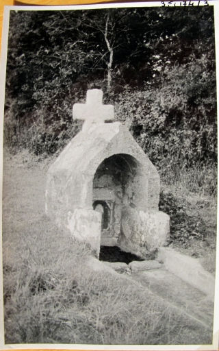 A. M. Lorient. 16 Fi 929. Août 1949. Plouhinec. Kervener. Fontaine Saint-Fiacre. Photographie, collection Crolard. Editeur Laurent-Nel, Rennes, H. Laurent, Port-Louis..