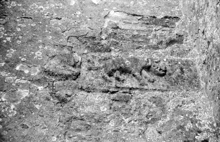 Eléments sculptés insérés en remploi au nord et à l'est de l'édifice.