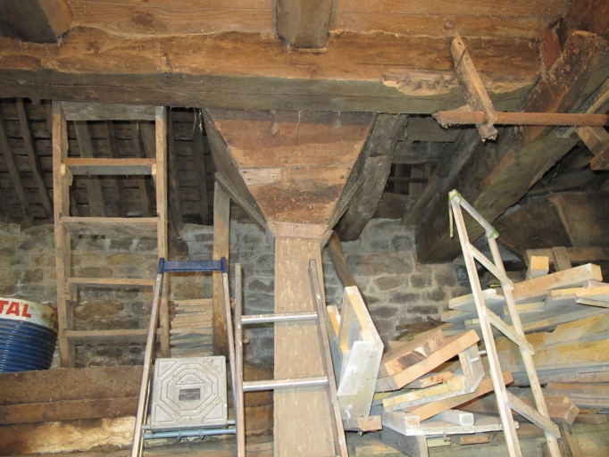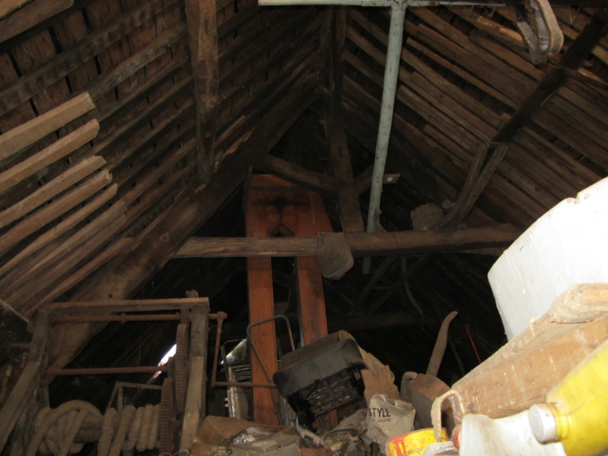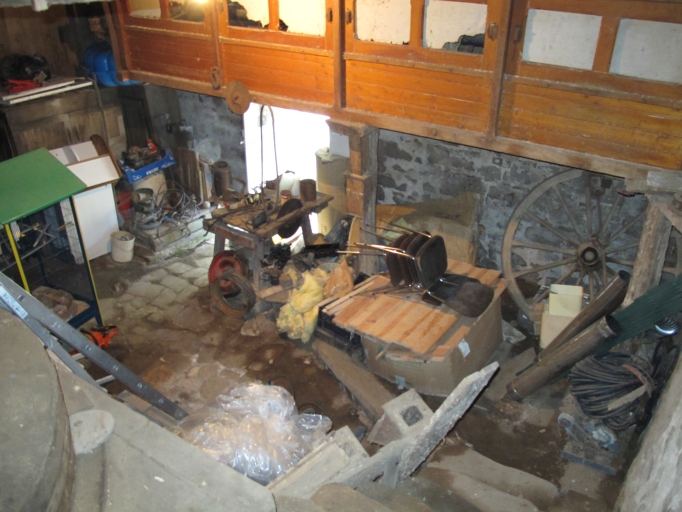 Le moulin à eau de Saint-Georges est constitué de deux corps de bâtiment perpendiculaires. Le premier, de plan rectangulaire renferme les mécanismes du moulin : le coursier, le bief, la vanne motrice et la roue hydraulique verticale à augets sont en places. A l'intérieur un escalier dallé permet d'accéder à un demi-étage sur lequel sont posés deux paires de meules, deux trémies et les rouages de transmission, cet étage étant également directement accessible par la porte en pignon nord. Deux axes de roues (trois à l'origine) dont l'une était utilisée pour la production de céréales pour les humains, l'autre pour les animaux, servaient à décortiquer le millet. Le second édifice, aussi de plan rectangulaire, servait de stockage et de remise ; en raison du décalage de niveau, la remise était située à l'étage.