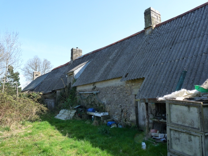 Edifice construit au 17e siècle, comme en témoignent les ouvertures et modifié au 20e siècle : un escalier est rajouté au sud, ainsi qu'un appentis au nord et deux soues à chaque extrémité de l'édifice. Dans la 2eme moitié du 20e siècle, une gerbière et une fenêtre en pignon de l'étable sont créées. La toiture en chaume est remplacée par une toiture en ciment amianté en couverture, entraînant une modification de la pente de toit, comblée par des parpaings de ciment sur les parties hautes de l'étable et de la grange.