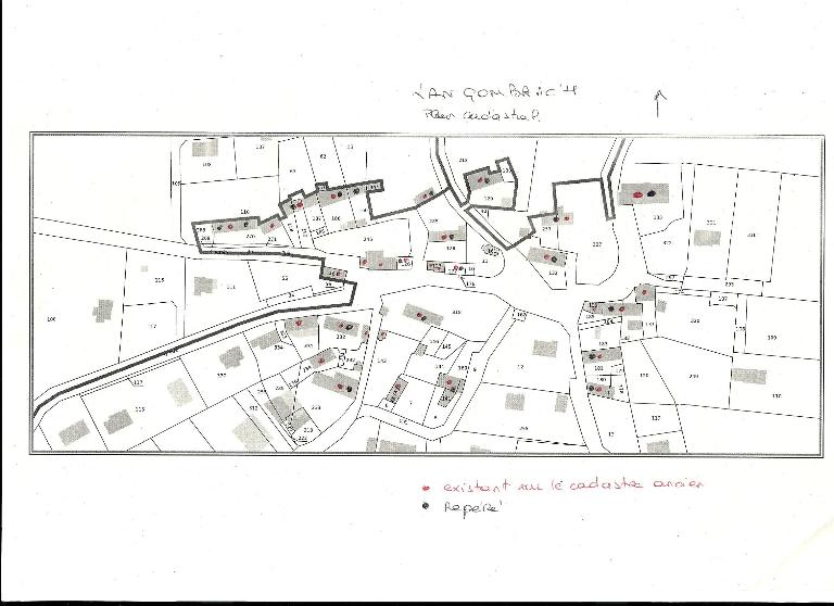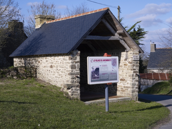 Le hameau ou village de Langombrac'h est d'occupation très ancienne : même si la stèle de l'Age du fer au sud-est de la chapelle a pu comme tant d'autres être déplacée, son occupation à la période médiévale est attestée par la présence de la stèle sculptée et du sarcophage (carolingien ?) placé dans la chapelle. Certains auteurs suggèrent d'ailleurs que le nom inscrit sur la stèle ait pu donner son nom au village (Lan, terre de, Conbracus). Les fermes les plus anciennes sont édifiées au 17e siècle. Cependant, presque toutes ont subi des remaniements importants dans la 2e moitié du 20e siècle : si certaines ont disparu depuis les photos prises en 1969, d'autres n'ont pu être identifiées après les remaniements intervenus depuis cette date. Il s'agit dans l'ensemble de fermes modestes, à mettre en relation avec un territoire environnant peu propice aux cultures : terres marécageuses, plantées de pinèdes au 19e siècle. Le puits abreuvoir a été modifié en 1922 pour la commodité des habitants du village et de leur bétail.