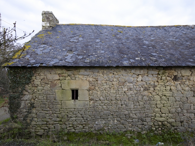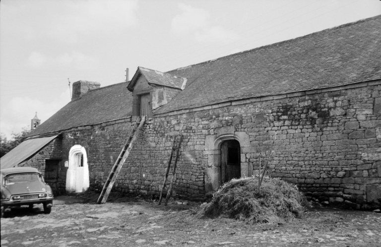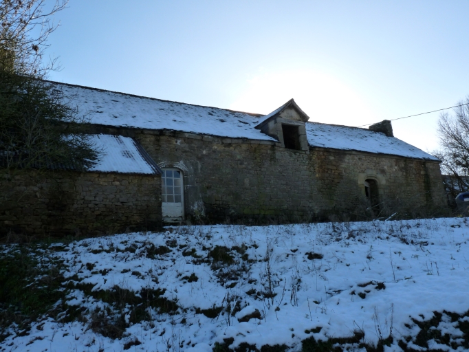 La ferme est érigée sur une hauteur avec pente vers le nord, ce qui a déterminé l'orientation de sa façade principale. Au sud, le jardin est clos d'un talus arboré. La ferme est construite en moellon régulier de granite, à l'exception de la façade sud de l'étable, en moellon irrégulier. La ferme est du type logis-étable à deux portes : la partie étable plus longue, à l'ouest, la partie logis à l'est, l'une et l'autre ouvertes d'une porte en anse de panier moulurée sur la façade nord. L'encadrement de la porte de la salle était encore blanchi à la chaux en 1969. En façade sud, la salle était également ouverte d'une porte largement moulurée en accolade, aujourd'hui bouchée, et d'une fenêtre à appui très saillant, ancienne, complétée au 20e siècle par une fenêtre moderne ; un petit jour chanfreiné aère la partie étable. A l'intérieur, la cheminée au pignon est, modifiée, ne conserve plus que deux consoles en quart de rond en pierre. Par contre, ont été conservées les massifs bas de pierre à usage de mangeoires qui formaient la séparation entre la salle et l'étable, séparation plus tard complétée d'une cloison de bois. La toiture en ardoise est soulignée par une corniche plate de la fin du 19e siècle ajoutée lors de la modification de la toiture. Une lucarne donne accès au grenier. La soue en retour au nord est construite en moellon et couverte en appentis. La porte à linteau de bois s'ouvre à l'ouest.