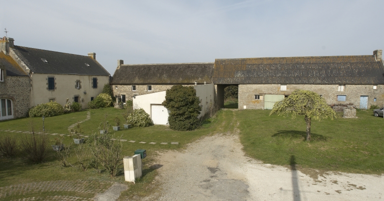 Les bâtiments se développent autour d'une cour fermée ; à l'isssue d'un chemin bordé de talus empierrés, l'accès actuel se fait par l'est entre deux dépendances basses, tandis qu'à l'ouest un corps de passage menait vers les champs. Les jardins au sud sont enclos de hauts murs, ceux englobant les jardins nord, plus bas, sont en partie détruits. Le nord et le sud de la cour sont occupés par deux logis avec dépendances en alignement. Au nord, le logis de type ternaire enduit, couvert en ardoise, est suivi par une grange à ouverture charretière sur gouttereau, également enduite, dont la toiture changée est couverte en fibro-ciment. Au sud, le logis de type ternaire qui occupe l'extrémité ouest, est suivi d'une grange et d'étables aujourd'hui transformées en maison. Ces bâtiments sont en moellon à l'exception du logis, enduit. Le bâtiment en retour à l'ouest, en moellon régulier, se compose d'une dépendance ou ancien logis à faux étage carré dans sa partie sud, suivi du corps de passage ouvert d'un arc surbaissé côté ouest et se prolonge par une étable à comble à surcroît. On note de nombreux remplois de pierres anciennes dans cette étable, dont un jour chanfreiné.