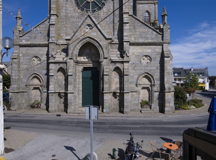 Le plan des deux anciens édifices figurent sur le plan cadastral de 1837. L'église de forme irrégulière possédait un choeur très allongé terminé par une sacristie polygonale, choeur qui avait été reconstruit (ou allongé ?) en 1790 (Danigo). La façade ouest portait la date de 1630, et le porche sud était contemporain. Au sud, le bras de transept se doublait d'une chapelle, tandis qu'au nord, c'est le choeur qui avait été doté d'un bas-côté qui se prolonge dans la nef. Celle-ci semble ancienne, peut-être romane, puisque les collatéraux étaient séparés de la nef par six arcades brisées ou en plein cintre reposant sur des piles à tailloir simple et que les fenêtres hautes et étroites semblent aussi romanes (Le Tallec). Un retable en marbre datant de 1665, d'après une inscription retrouvée lors de la démolition de l'édifice, ornait le choeur.