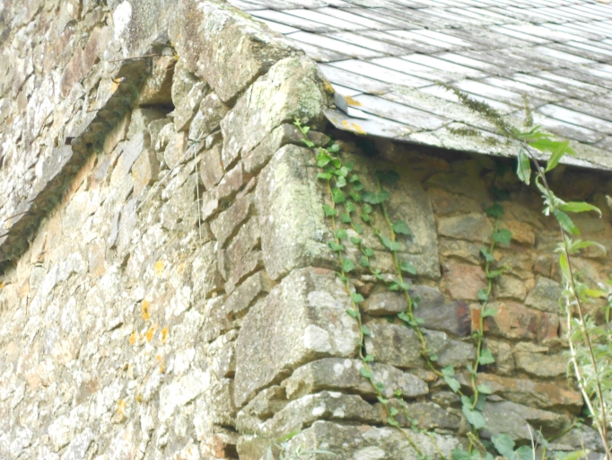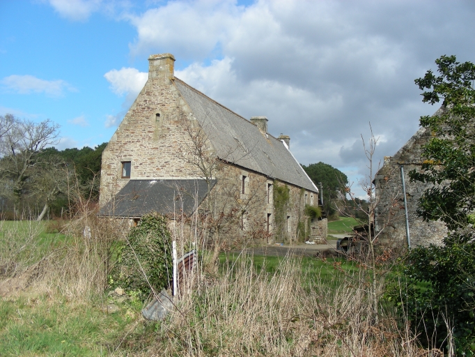 Le grand logis construit en moellon régulier de granite se compose de deux parties, séparées par un mur de refends de part et d'autre duquel sont engagées les deux cheminées : à l'ouest, le logis étable, à l'est le nouveau logis à pièce unique, l'un et l'autre surmontés d'un double grenier, le premier formant faux-étage plafonné. Le premier logis à élévation ordonnancée, avait une structure symétrique : couloir axial limité par des cloisons, abritant un escalier en bois. La salle à l'est a une cheminée de type classique : piédroits simples et linteau de bois sur sommiers, sans consoles. Un désépaississement du mur sud au niveau du refends permet de rabattre la porte de communication avec le second logis sans empièter sur le passage. A l'ouest, la partie dédiée à l'étable est éclairée comme la salle d'une grande fenêtre. Le logis est, également en moellon, mais à la mise en oeuvre irrégulière, se compose d'une pièce unique chauffée par une cheminée identique à la précédente, située sur le refends. L'ensemble est surmonté d'un grenier plafonné, non chauffé, éclairé de grandes fenêtres ; cependant, la fenêtre axiale du grand logis est plus proche d'une porte haute. Le second grenier qui était desservi par un second escalier est éclairé d'un petit jour dans chacun des pignons. La soue à l'ouest, en appentis sur le pignon est construite en moellon avec une porte unique au sud. La grange à ouverture charretière en pignon est construite en moellon et s'ouvre sur le chemin. Sa pente de toiture modifiée se voit par le basculement des pierres de taille en sifflet bordant le pignon. Le puits est en pierre de taille, avec superstructure en ferronnerie.