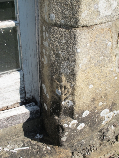 On notera un décor plusieurs fois rencontré sur le territoire, le motif de remplage sculpté sur le linteau, que l'on retrouve à Porh Berringue et à Kervran en Plouhinec par exemple.