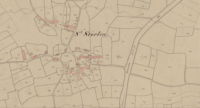 Le lavoir de Saint-Sterlin est construit en 1800 sur un commun de village non cadastré en 1837.