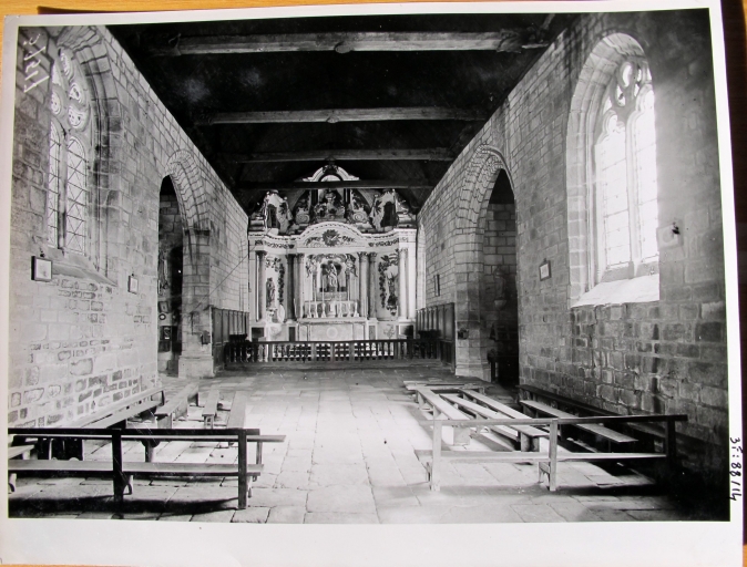 Les quelques vues de la chapelle montrent un édifice qui semble parfaitement homogène, entièrement en pierre de taille, sur plan en croix latine. Les arcades du transept à mouluration pénétrante retombent sur des piles octogonales avec base moulurée. Une porte en anse de panier avec archivolte en accolade s'ouvre dans le pignon du bras de transept sud, et une fenêtre à remplage à fleur de lys dans le mur est du même bras. Une porte identique est percée dans le bras nord du transept. Le choeur était éclairé par deux fenêtres qui semblent antérieures à la mise en place du grand retable en calcaire, sans doute du 17e siècle, qui occupait le choeur. Pourtant, le plan de Dutartre indique la présence d'une grande fenêtre axiale dans le choeur ; elle semblait avoir été rouverte après les travaux de Dutartre, peut-être au prix de la disparition du grand retable mise en place au début du 18e siècle par le morbihannais Claude Moullé (recherches Sandrine Guillot). La puissante tour occidentale était la partie la plus remarquable de l'édifice. Hors de proportion avec le reste de l'édifice, elle est inspirée de la tour d'Hennebont (1524), sans doute le modèle, et se retrouve dans de nombreuses grandes chapelles morbihannaises, comme à Saint-Nicodème à Pluméliau vers 1535, Locmaria de Melrand vers 1530, ou encore Notre-Dame de la Houssaye à Pontivy et à l'église de Larmor. Elle se distinguait cependant par l'ornementation unique déployée sur la face ouest sous une archivolte à décor de feuilles de choux assez maladroites, un grand Christ en croix cantonné de plusieurs personnages dont la Vierge et saint Jean. Peut-être y était aussi représenté le seigneur de Lopriac, principal prééminencier de la paroisse.
