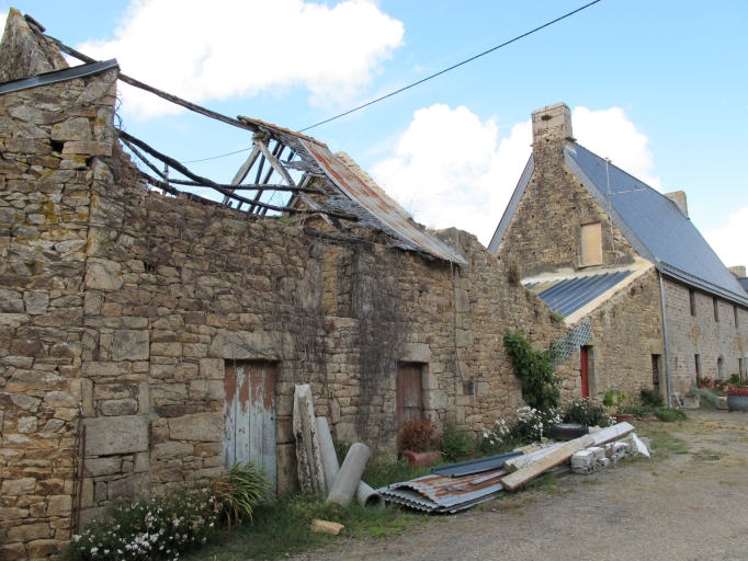 La ferme qui était construite en un grand alignement regroupant logement et fonctions agricoles ne comporte plus aujourd'hui qu'un logis et une laiterie en alignement. Le logis est construit en moellon équarri très régulier de granite, avec élévation ordonnancée à trois travées. Il se compose d'une pièce à feu dans la pièce ouest du rez-de-chaussée, à linteau de bois et consoles en quart de rond, caratéristique du 19e siècle sur ce territoire ; un évier surmonté d'une armoire murale en plein cintre est placé près de la cheminée dans le mur gouttereau sud. La pièce est n'est pas chauffée. L'étage carré n'est qu'un grenier plafonné et surmonté d'un second grenier de comble. Une porte de communication dans le pignon relie la pièce ouest et l'étable en prolongement.