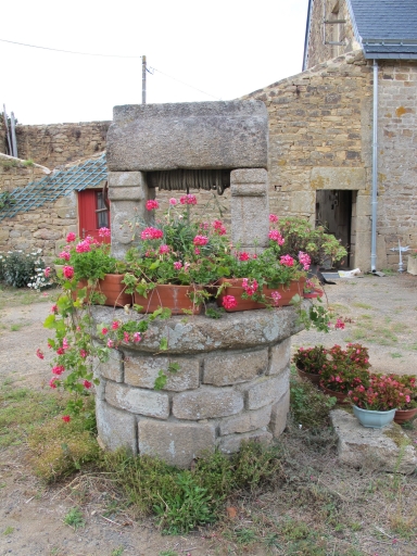 Le puits en pierre de taille avec épaisse margelle monolithe est orné de nombreuses sculptures en demi-relief : calice et ostensoir, tête humaine, pichet et verres.