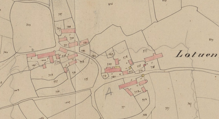 Le grand village de Lothuen se compose de deux noyaux distincts. Les constructions qui composent le premier noyau sont réparties le long de la route actuelle, avec au sud, la ferme étudiée, du 17e siècle, et au nord plusieurs anciennes fermes en alignement disjoint.
