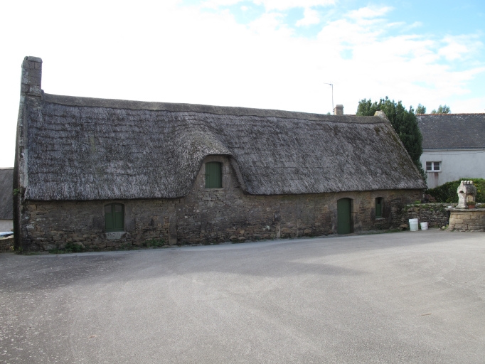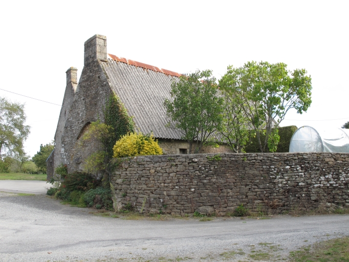 La parcelle suivante (parcelle 160) a malheureusement subi quelques remaniements qui ont altéré l'état d'origine de cette remarquable ferme, malgré la conservation de sa mise en oeuvre de qualité, de ses volumes et de sa pente de toit d'origine. Datée 1781 et 1811, elle est constituée de trois unités identiques de type ternaire en alignement, dont les ouvertures hautes ont été rehaussées pour devenir passantes. La partie centrale qui était datée 1781 (information orale redatée) abritait le logis avec une niche à chien bordée d'un gros tore incluse dans le mur de façade. Les deux parties latérales devaient être les dépendances, à l'ouest contemporaine du logis, à l'est ajoutée au milieu du 19e siècle : la date portée de 1811semble fausse, cette partie ne figurant pas sur le plan cadastral de 1837. L'ensemble compose un ensemble exceptionnel pour la commune, à comparer avec Kervehennec, à l'est du bourg, mais la toiture en fausse tuile, la suppression des divisions intérieures, des cheminées, de l'escalier font de cette restauration un exemple de "façadisme", et encore, vu la surélévation des baies de l'étage de grenier.