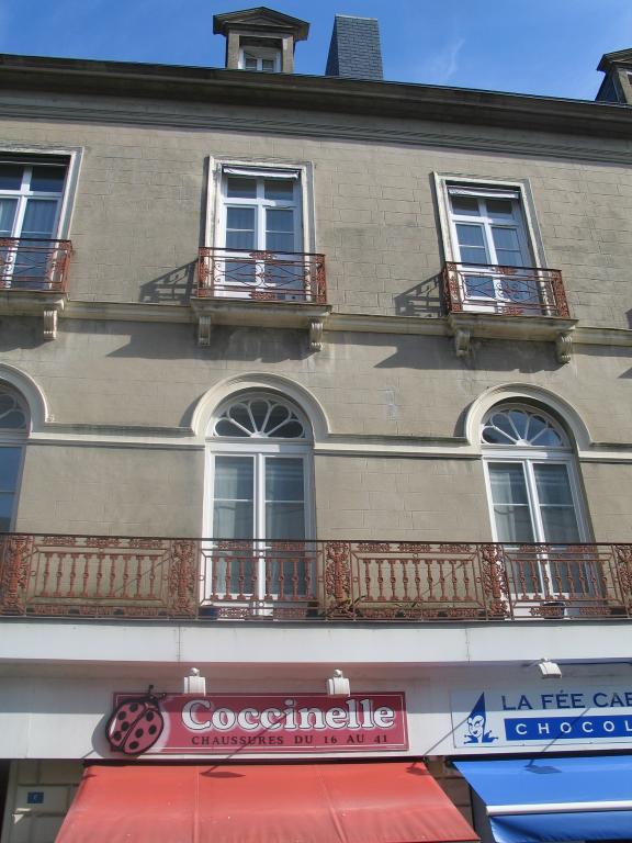 Grand immeuble construit en bordure de l'enceinte pour Jean Lallement qui en fait en 1840 la demande d'alignement. L'immeuble est construit sur l'emplacement de la cour de l'hôtel de Villayer d'après le plan du procès-verbal d'estimation de l'hôtel divisé à la Révolution en une grande et petite maison Villayer, pour en faciliter la vente. La construction de l'immeuble est autorisée sous réserve que la façade sur rue soit édifiée sur les fondations du mur de clôture. Il est probablement construit vers 1841-1842 (il figure sur le plan de Charier pour l'hôtel de Préfecture de 1843) : les matrices cadastrales indiquent en 1844 que l'édifice est construit (maison, sol, cour, bâtiment) et qu'il est pourvu de 42 portes et fenêtres. L'attribution à Marius Charier alors architecte de la ville est probable et rejoint d'autres édifices comme le 1 rue Lesage et le 8 place Maurice Marchais.