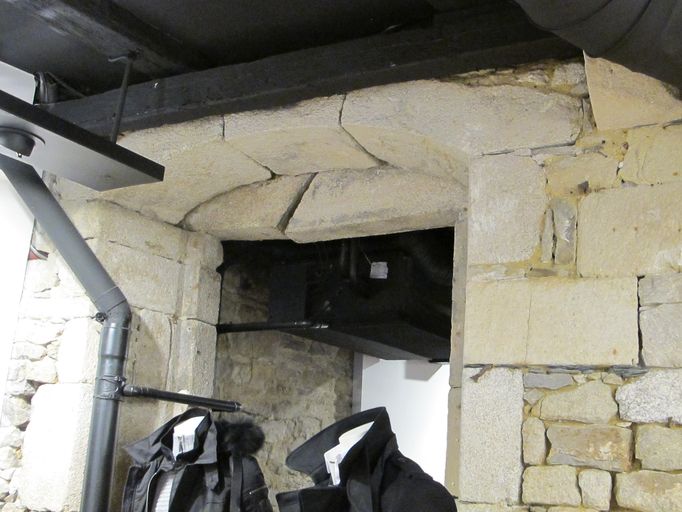 Maison en pan de bois dont les caractéristiques architecturales, charpente de façade, galandage de l'encorbellement, font remonter l'édifice au 15e siècle qui est mentionné dans le rentier de 1455. La maison est signalée dans ce document comme étant la plus ancienne des trois maisons déclarées en même temps et qu'elle est la seule de ces trois maisons à être déjà édifiée lors du précédent rentier (1413). La maison appartient en 1455 à Perrot Kerneirec et à Jehan Salmon en 1413.