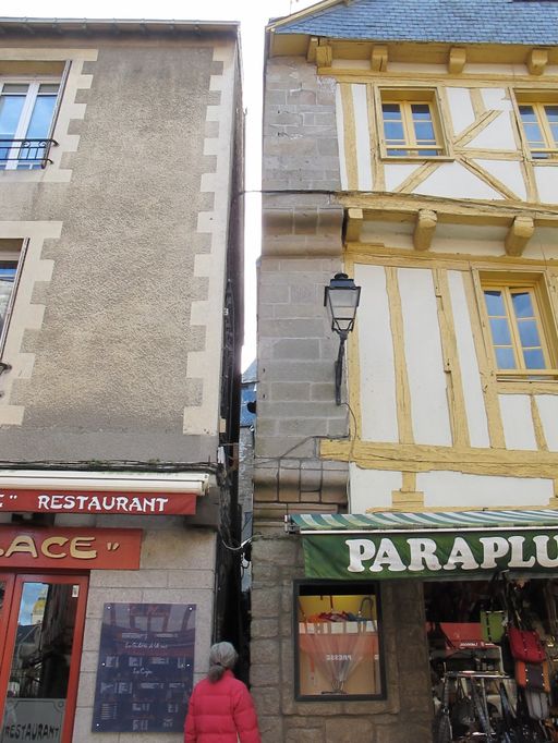 Typologiesen alignement de rue ; plan double en profondeur ; parcelle d'angle ; encorbellement ; mur latéral ; pignon sur rue