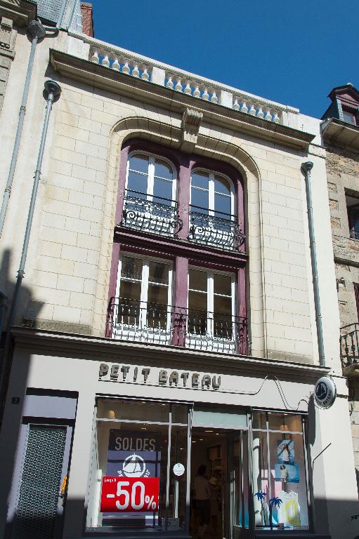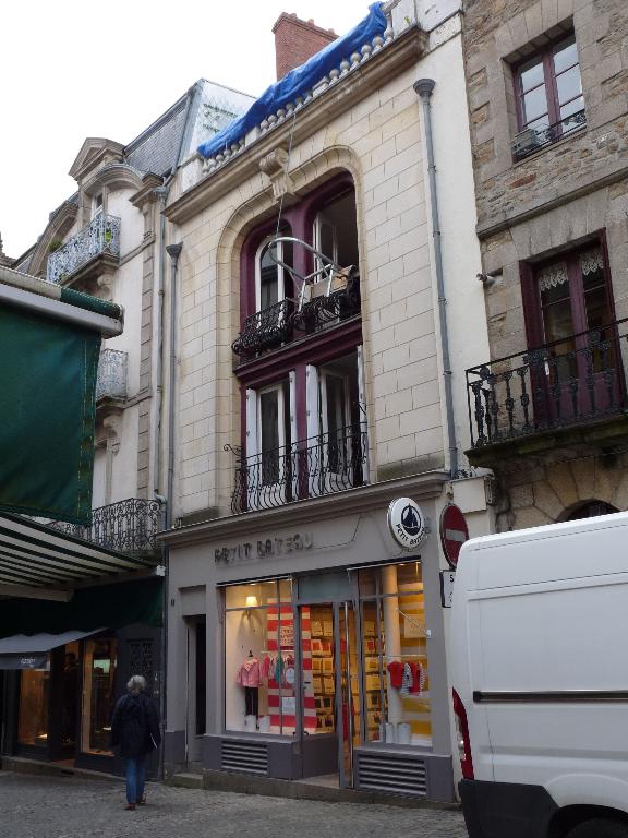 Maison ancienne mentionnée dans la réformation comme appartenant à Jean Poury de son vivant, sieur de la Juhelay et procureur au présidial de Vannes. Les cadastres anciens de 1807 et 1844 montrent la maison avant la reprise de sa partie donnant sur la rue. Elle comprend une cour postérieure, couverte aujourd'hui, avec un puits. En 1844, les archives indiquent une reconstruction de la maison pour Pierre Moisan. C'est sans doute à cette date que la maison marque son alignement actuel.