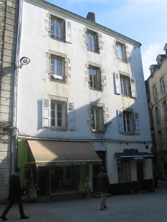 Maison reconstruite d'après les plans cadastraux napoléoniens vers 1792 sur l'emplacement d'une maison plus ancienne établie en bordure du mur d'enceinte et du corps de garde de la porte Saint-Salomon vers l'ouest. D'après les archives, la reconstruction de la maison est soumise à l'alignement donné par l'ingénieur de l'arrondissement de Vannes, Laumailler qui dresse le plan joint au dossier. La maison reconstruite comprend deux travées supplémentaires en façade sud correspondant sans doute à l'emprise du mur d'enceinte. Elle comprend une cour intérieure couverte aujourd'hui.