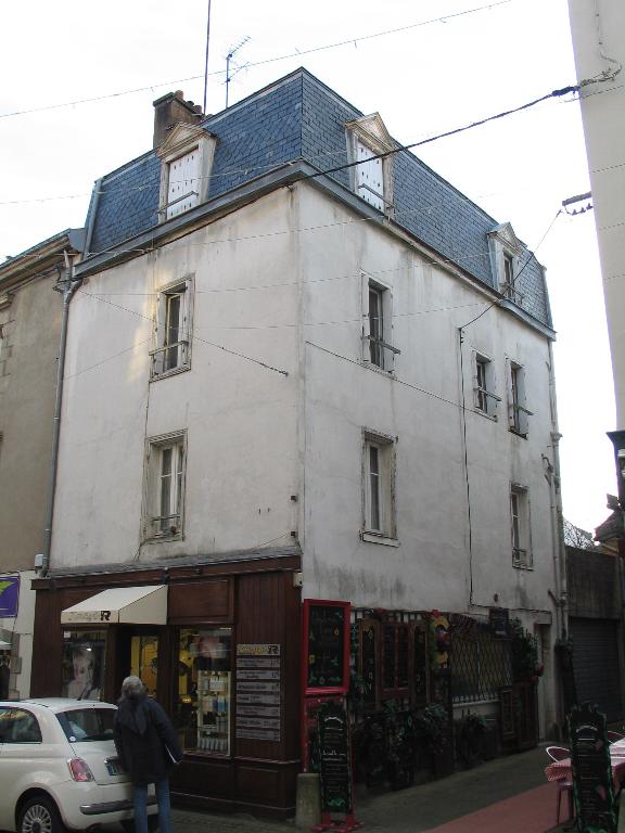 Maison figurant sur le projet d'élévation d'une nouvelle halle aux grains dressé par Brunet-Debaines en 1820. La maison est sans doute reprise par la suite. Un garage est greffé en rez-de-chaussée sur sa façade postérieure, garage qui ne lui appartient pas. L'enduit actuel dissimule peut-être une mise en oeuvre en pan de bois.