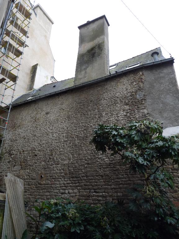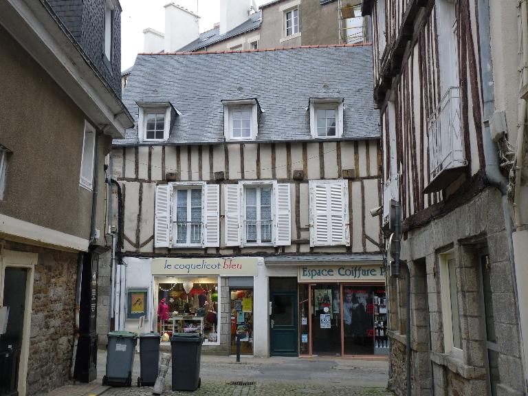 La maison autrefois adossée aux jardins de l'ancien évêché est jointive aujourd'hui au magasin Burton ; alors qu'autrefois l'enduit de sa façade principale empêchait d'analyser sa structure en pan de bois (cf les anciennes cartes postales), le dégagement de ce dernier permet de voir au niveau du premier étage un pan de bois ancien pouvant remonter au 16e siècle. Elle comporte également un exhaussement réalisé au 19e siècle (?) qui a servi à l'aménagement d'un étage de comble. La façade sur rue montre ces traces de remaniement pour créer un étage supplémentaire même si les murs latéraux ne portent pas de trace de surélévation. Les têtes de poutres qui ressortent entre les poteaux rappellent cette opération et témoignent aussi sans doute d'un ancien encorbellement disparu. Toutes les fenêtres du premier étage ont été agrandies au 19e siècle.