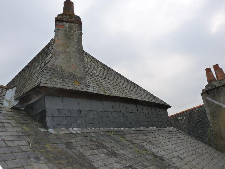 qui s’arrêtent au premier étage pourraient faire penser à une reprise du pan de toiture rehaussé pour la création