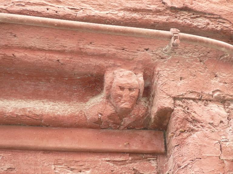 soubassement mouluré avec de petites sculptures sur l’encorbellement du premier