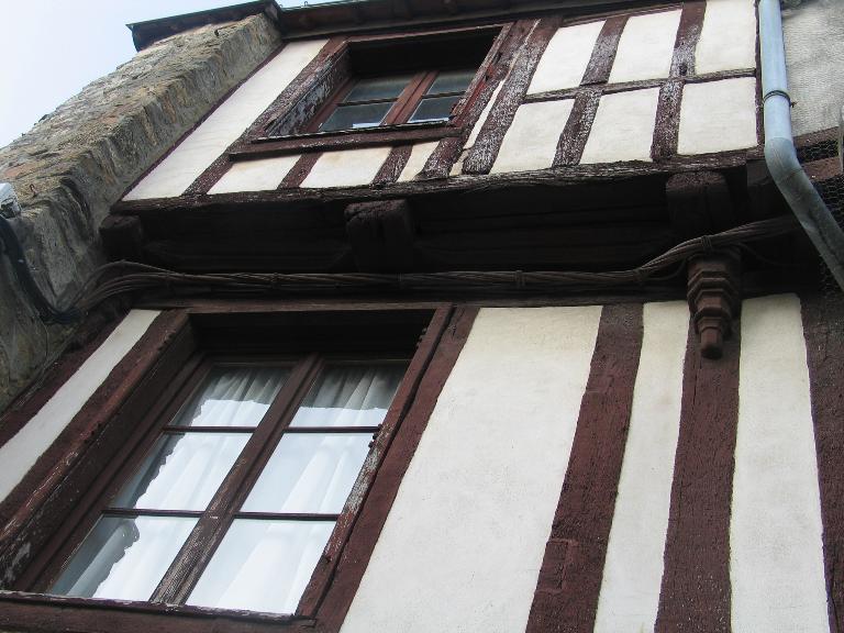 Petite maison construite sur l'emplacement de la rue aux Asnes qui a disparu dans le parcellaire actuel depuis la fin du Moyen Age. L'emplacement est repris pour y construire une maison au 16e siècle d'après les caractéristiques du pan de bois : encorbellement et console à culot. Sur un des plans conservés du palais épiscopal, elle est établie à côté de son corps de garde.
