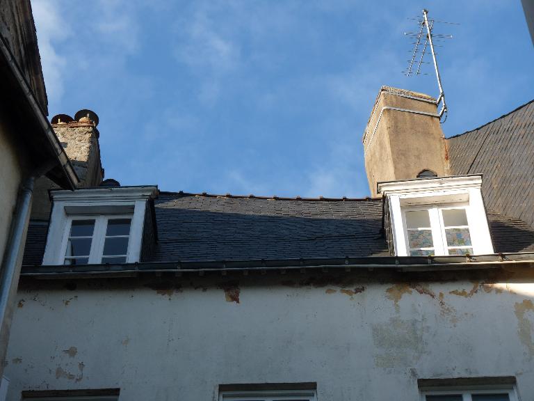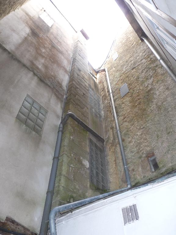 Maison ancienne que l'on ne peut dater avec précision en l'absence d'archives ; elle ne figure pas dans le rentier de domaine ducal de 1455-1458, ni dans la réformation de 1677. Elle est établie en dehors de la première ville close versant nord de la rue après l'ancienne porte Mariolle et le long de l'ancien alignement datant du passage qui menait au couvent des cordeliers ; ce qui explique sa façade biseautée sur les cadastres anciens de 1807 et 1844 ainsi que sur celui d'aujourd'hui. Les vestiges du faux-enduit pan de bois sur la façade laissent penser à une reprise de cette dernière au cours du 3e quart du siècle dernier et à une mise en oeuvre initiale en pan de bois. Depuis la boutique en rez-de-chaussée, on peut accéder au sous-sol de la maison par un escalier dont l'emplacement et la forme ronde sont certainement des vestiges d'un escalier plus ancien. Elle appartient en 1844 à Michel Le Fol, employé du cadastre.