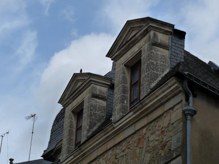 Petit logis de plan massé en alignement de rue d'un étage carré surmonté d'un étage de comble. Les lucarnes et la corniche en pierre de taille de calcaire. La façade sur rue du logis est désenduit aujourd'hui et montre un bandeau de granite à hauteur des ouvertures.